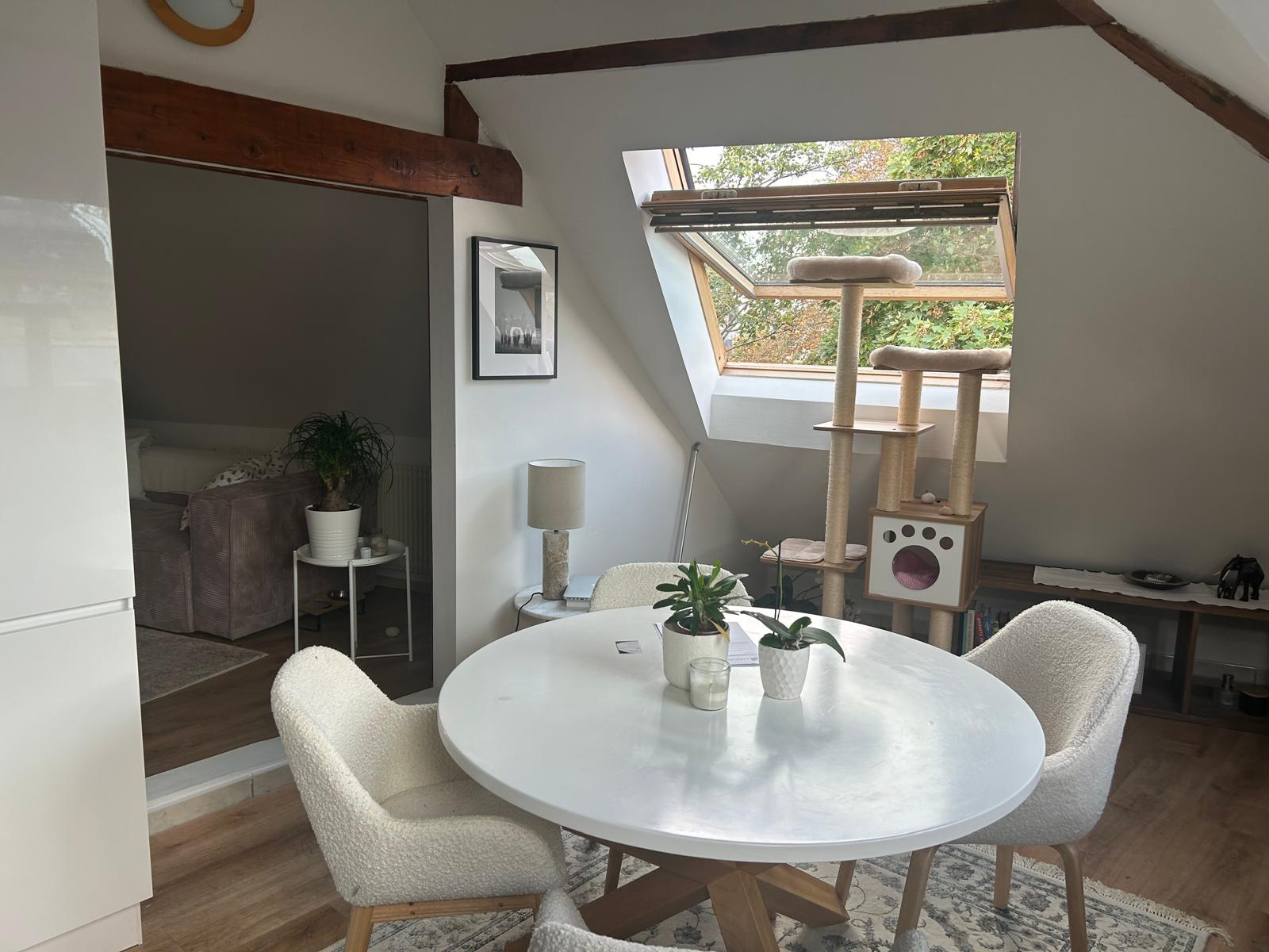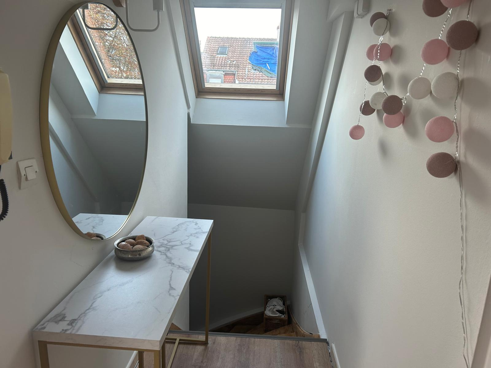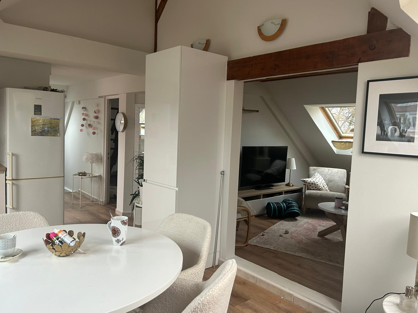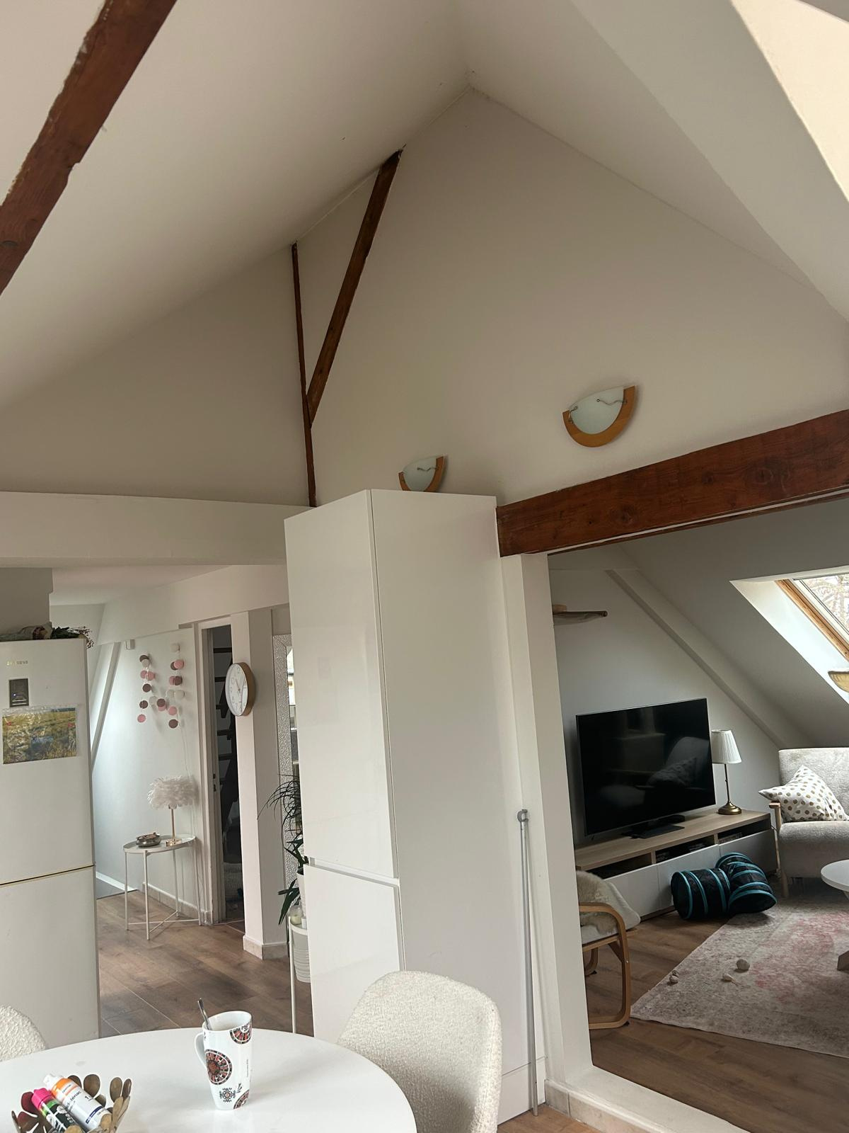 Coquet appartement refait à neuf de type F2 au dernier étage de 76m² au sol, immeuble de 3 appartements, proche commodités centre-ville MULHOUSE, Rue Schlumberger comprenant une belle cuisine équipée complète ouverte sur un séjour traversant parquet stratifié neuf, velux, pas de travaux à prévoir. Une salle de bains équipée avec WC, une chambre avec accès petite mezzanine. Chauffage au gaz individuel. Faible charges de copropriété. Taxe foncière 526€. Appartement bien isolé DPE : C