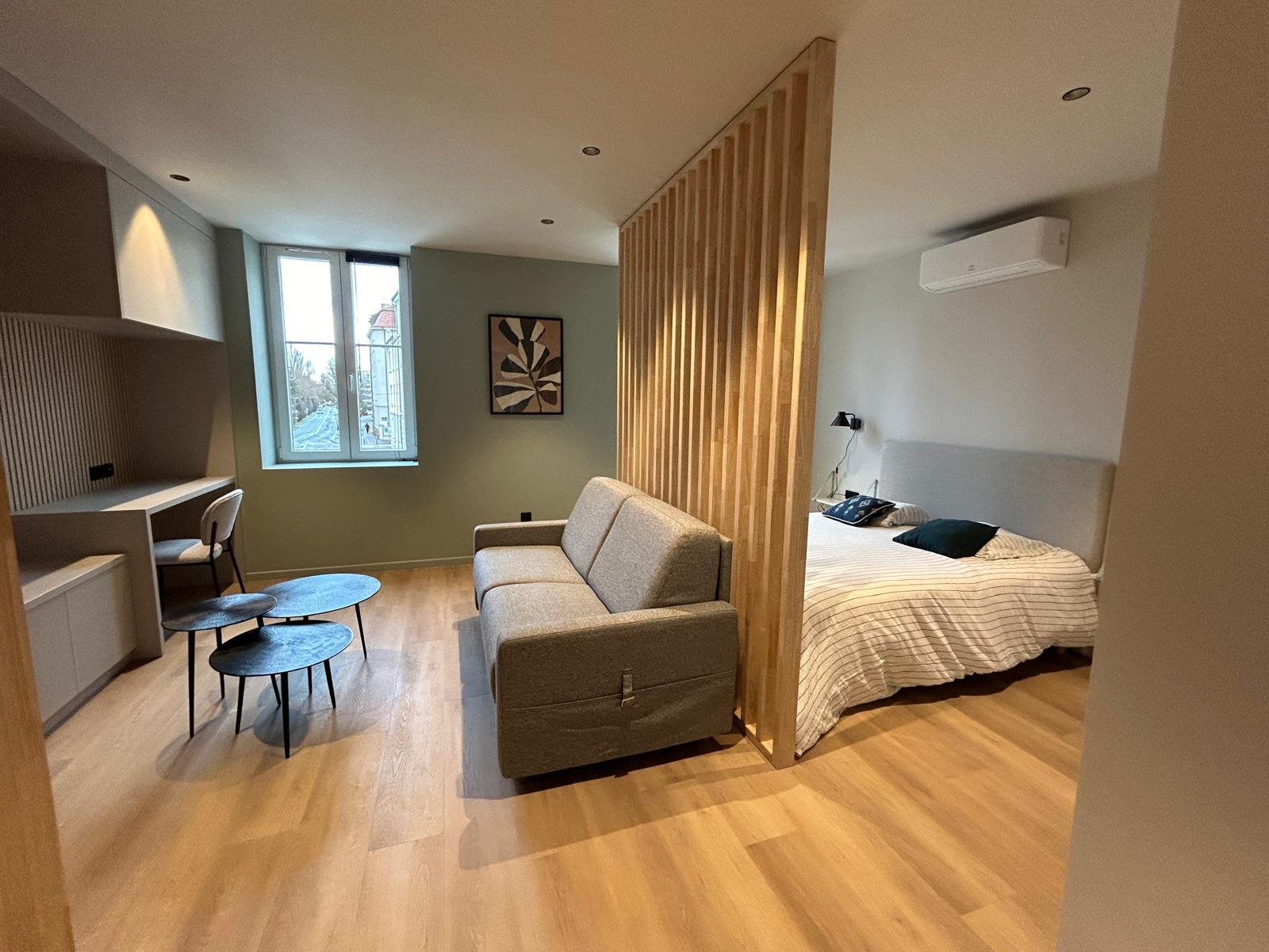 Magnifique appartement de type F1 dans maison rénové à neuf au 1er étage, proche tram (arrêt nordfeld), à 10 minutes de la Gare, comprenant une magnifique cuisine équipée complète, une pièce à vivre avec des meubles neufs (un grand lit 2 personnes, bureau, meubles de rangements, un canapé convertible) une salle de douche équipée avec un WC, des placards. Climatisation. Proche commodités. Loyer 650€ + 40€ de provisions pour charges Honoraires de location à la signature du bail soit : 417.12€