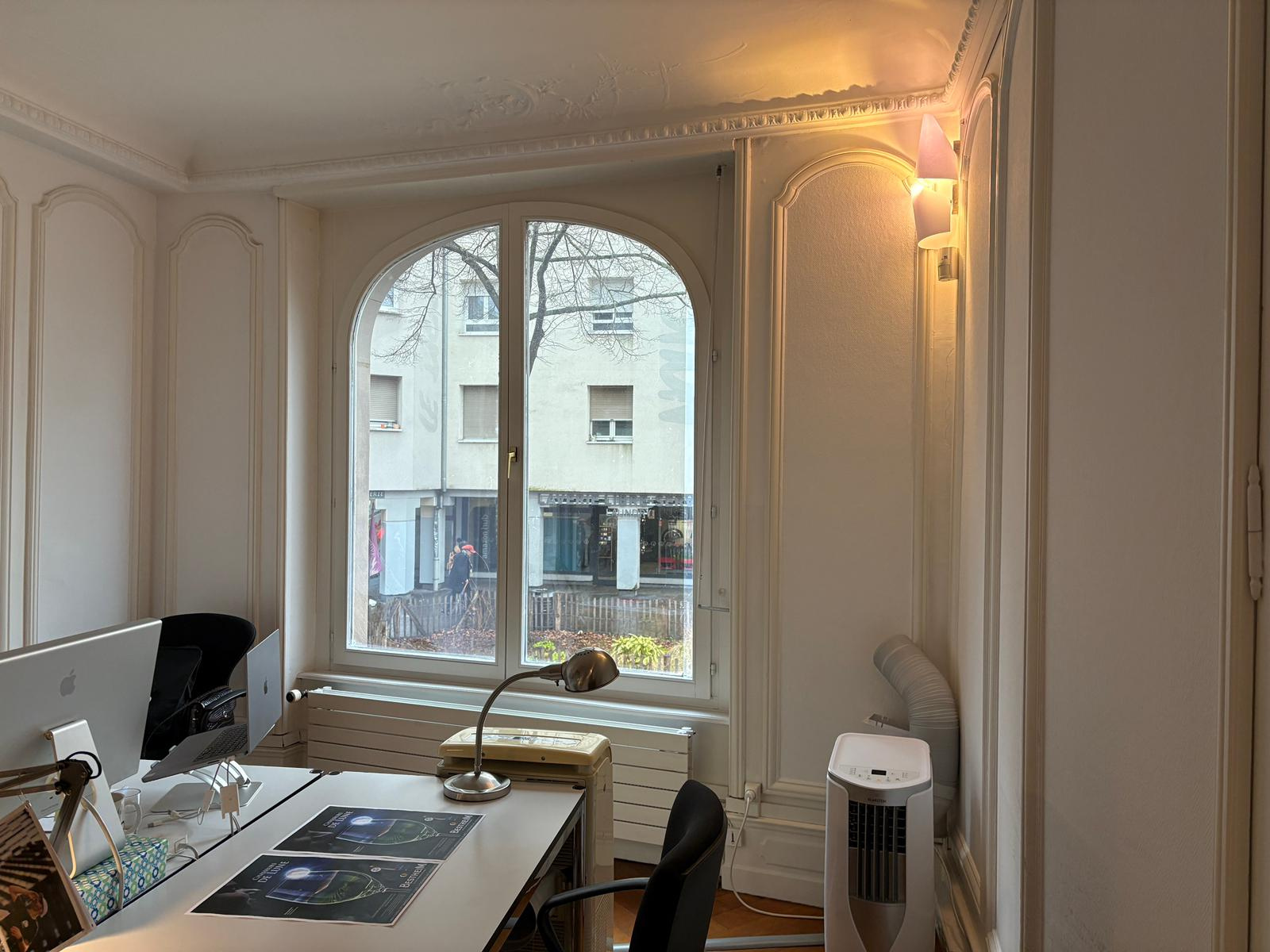 Local professionnel avec beaucoup de charme à louer au centre historique de Mulhouse de 135m2 comprenant un espace accueil, 3 bureaux, une salle de réception, une véranda et un WC sur pallier. Une place de parking extérieur. Pas de restauration pour la location. Chauffage individuel au gaz. Activités : bureaux (restauration exclu) Loyer 1 200€ + 170€ de provisions pour charges Honoraires de location : 1 440€ Dépôt de garantie : 2 400€
