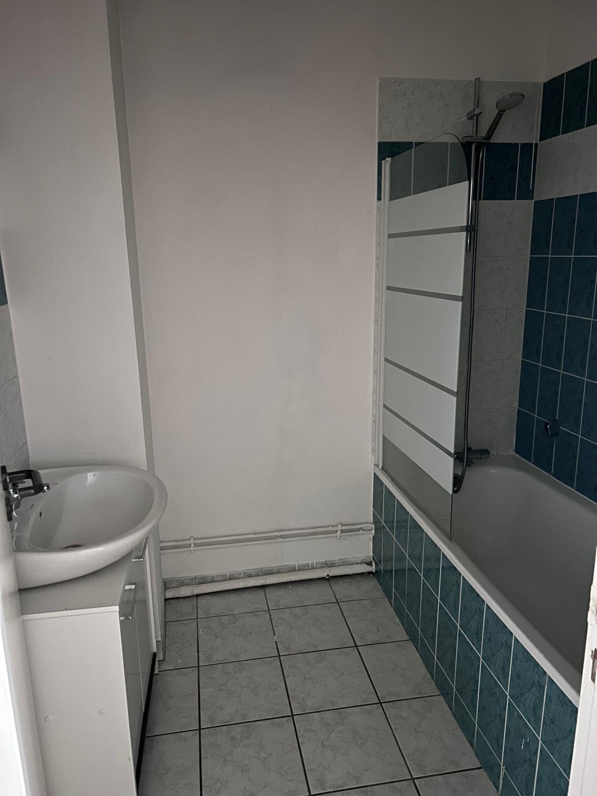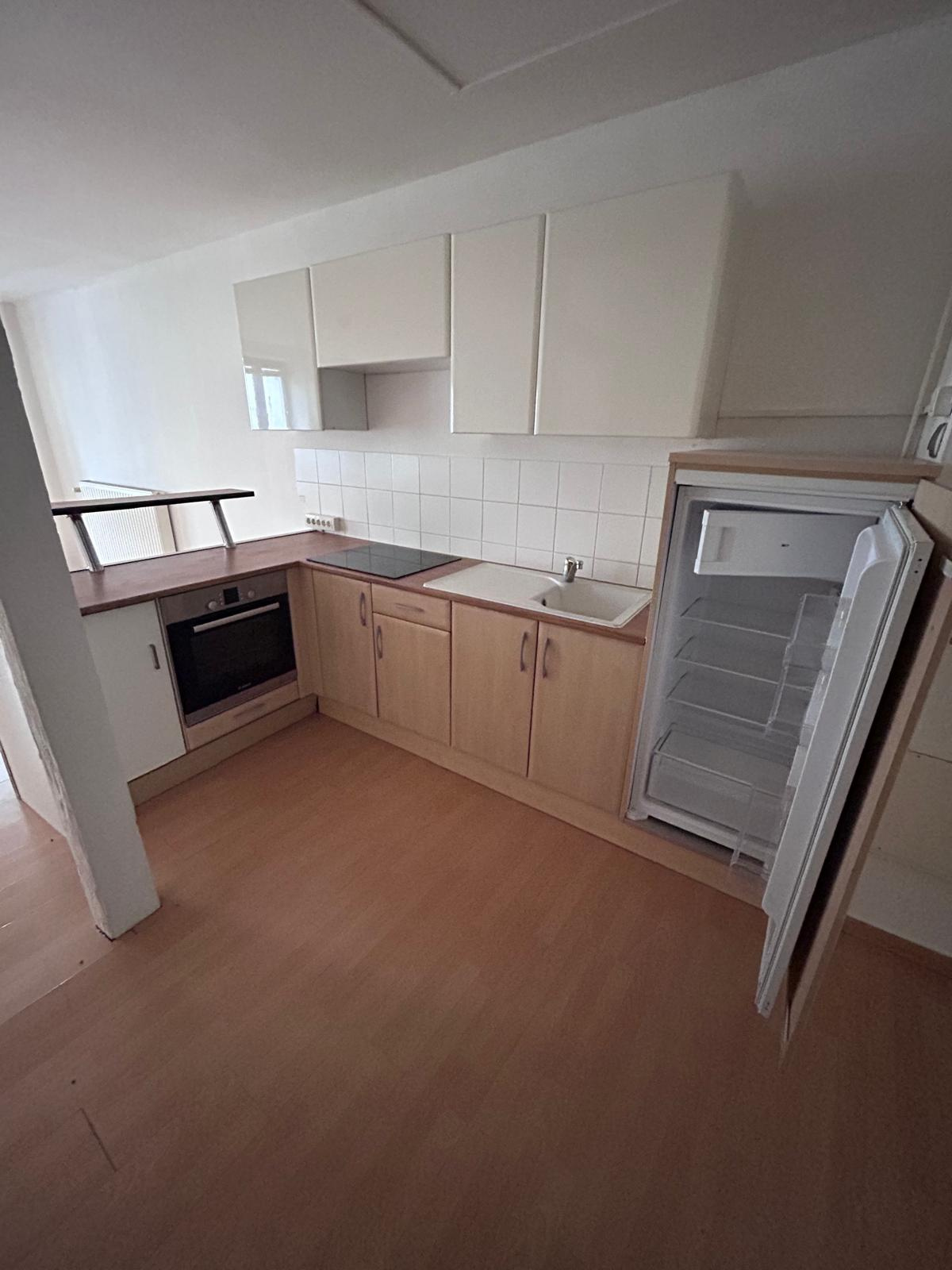 Appartement de type F2 situé au centre-ville au 3ème étage d'un petit immeuble comprenant un hall d'entrée avec placards, une cuisine équipée ouverte sur un séjour, une chambre, une salle de bains avec baignoire, WC séparé. Chauffage individuel au gaz. Loyer 520€ + 40€ de provisions pour charges Honoraires de location à la signature du bail : 484.40€