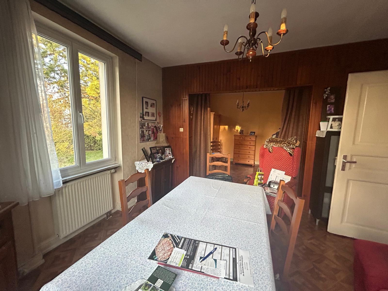Spacieuse maison située rue Cendrillon à STAFFELFELDEN mitoyenne d'un côté avec un grand terrain de 5ares75, un garage extérieur fermé, la maison comprend au RDC : -une cuisine séparée, un séjour, un salon, une salle de douche, un WC séparé -à l'étage 3 chambres En sous sol : une buanderie, une cave. Jardin privatif clôturé arboré et une remise. Chauffage individuel au gaz. Prévoir travaux. Proche commodités écoles transports en communs.
