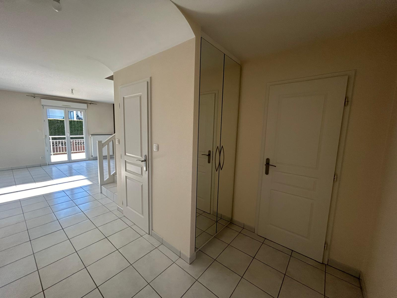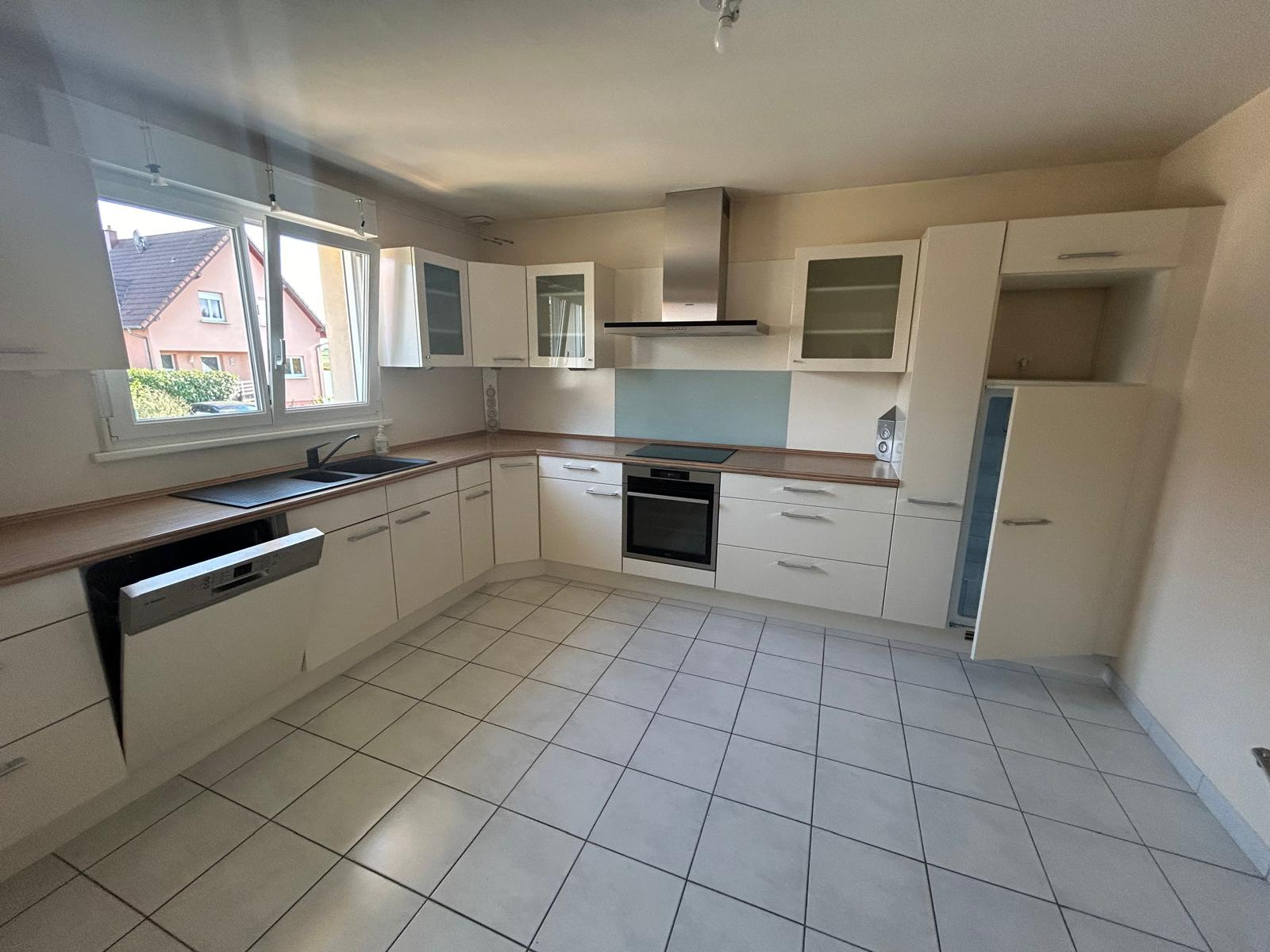 Magnifique maison récente de type F5 avec de belles prestations composée au RDC un hall d'entrée avec placard, un WC, une grande cuisine équipée complète, un grand salon séjour avec baie vitrée accès sur terrasse. A l'étage 3 chambres avec dressing, une grande salle de douche équipée avec WC. En sous sol une chambre avec dressing, une buanderie, un garage 2 voitures. Maison arborée clôturé avec un jardin, une remise, une seconde terrasse. Maison lumineuse, chauffage au gaz individuelle (chaudière neuve). Loyer 1 450€ + 150€ (entretien extérieur) Honoraires de location à la signature du bail : 931.22€